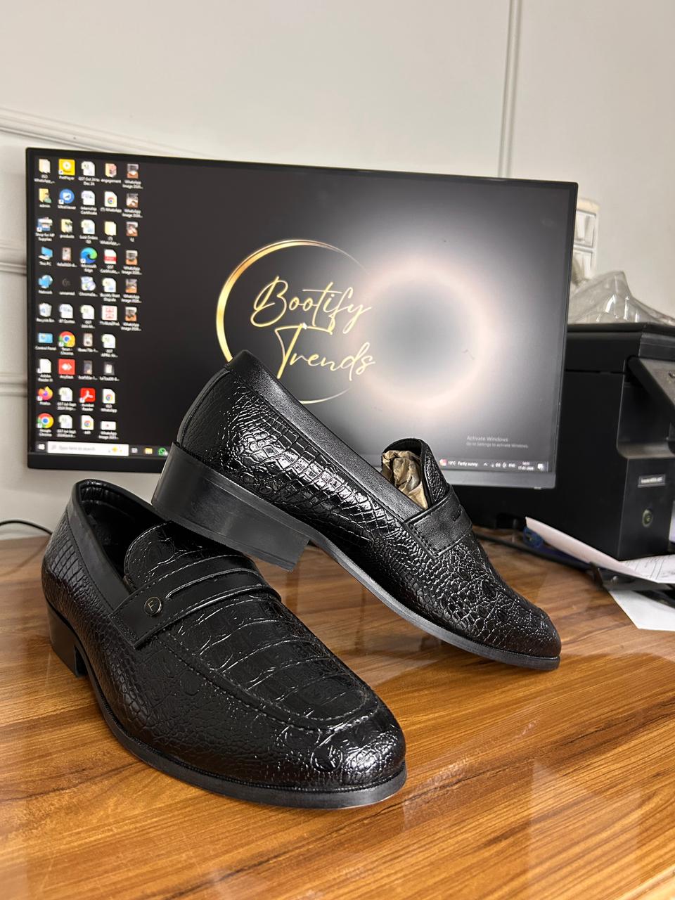 Be the first to review “Frank Romello Snake Print Loafer (Black) (Wood Sole)”